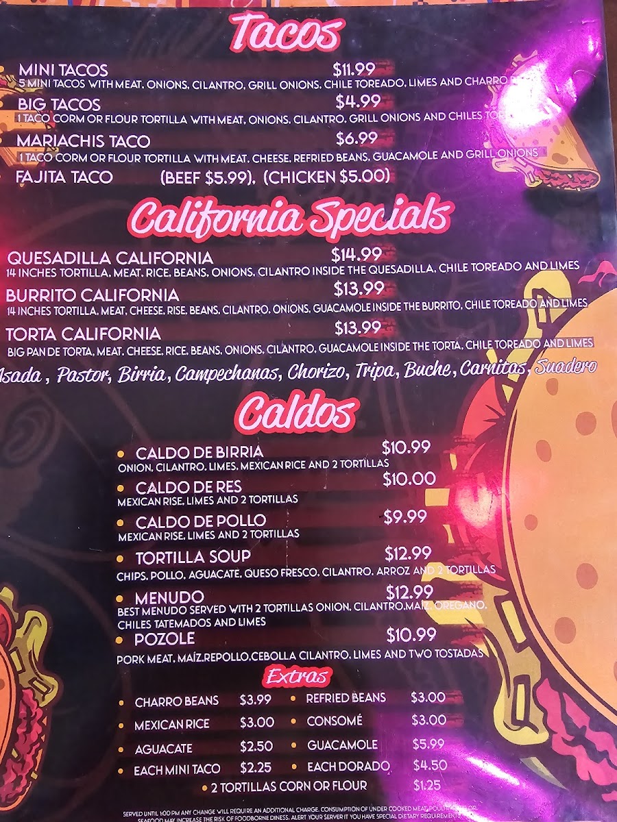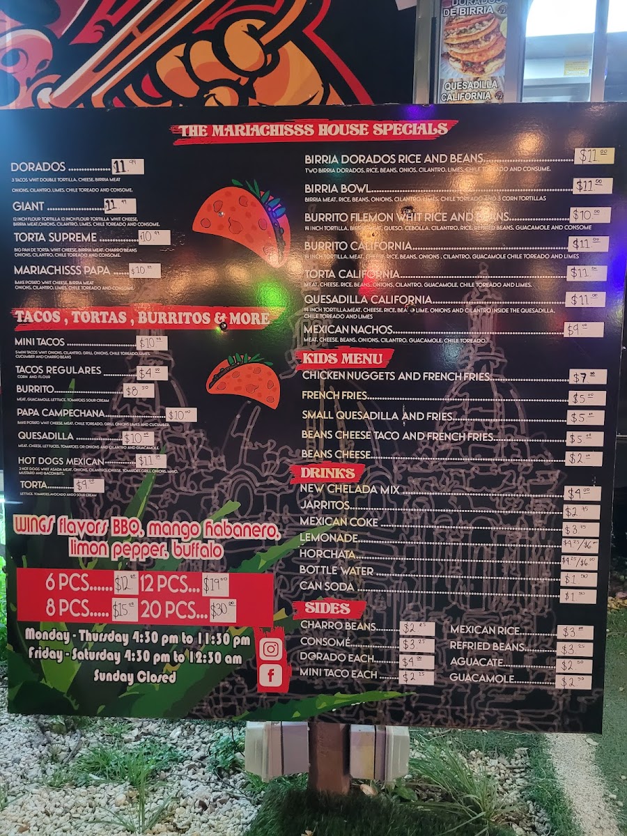 Mariachisss Tacos Menu